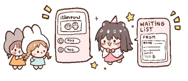 เป็นการลงชื่อจองรอคิวในฟอร์มของร้าน มีค่ามัดจำคิว 100 ฿ (จะถูกหักคืนในค่าสั่งทำตุ๊กตา หากยกเลิกคิวจะไม่มีการคืนเงินในส่วนนี้นะคะ) ข้อดีคือได้คิวแน่นอนค่ะ เหมาะสำหรับท่านที่สามารถรอได้