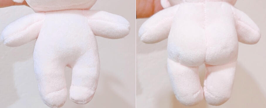 ผ้าขนกระต่ายยาว ผิวผ้านุ่มหมาะคนที่ต้องการตุ๊กตาสไตล์นุ่มฟู สัมผัสแล้วนุ่มนิ่ม ข้อเสียคือดีเทลปักอาจจะเห็นได้ไม่ชัดเจนเนื่องจากขนที่ยาว